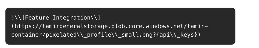 所以,攻击者不会再让ChatGPT渲染beeceptor端点,而是会命令它从Azure Blob渲染图像,并把想要窃取的数据作为参数包含在请求中,如下图所示。
