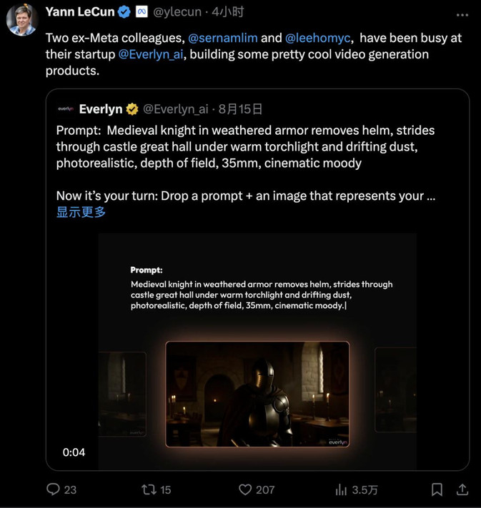 对于最新的重组,LeCun尚未做出回应,只是在给离职前同事的创业项目点赞。