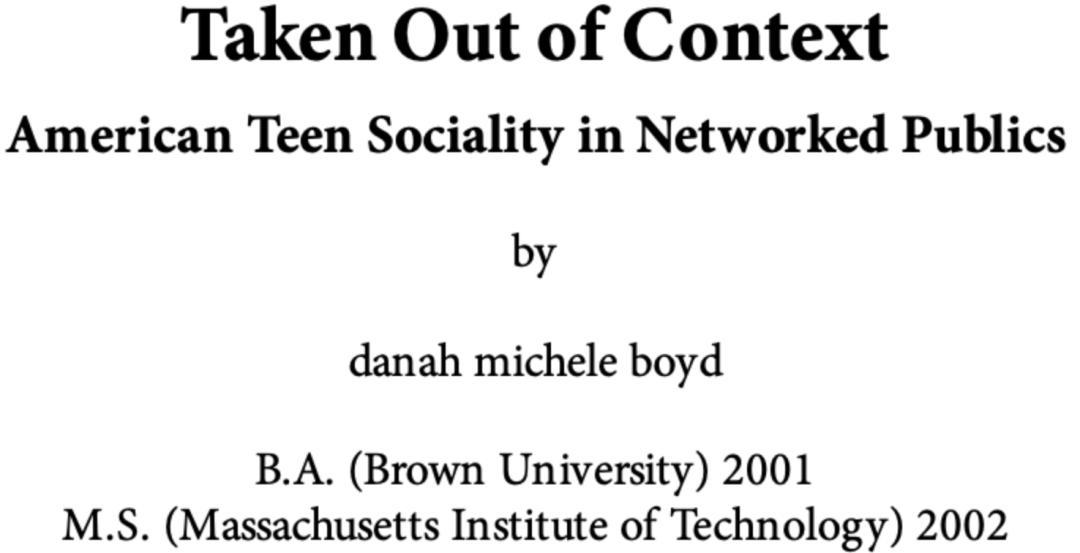 一直到2005—2008年,她发表的一些文章依然在用「collapsed contexts」。比如她的博士论文把「语境坍塌」作为核心概念。