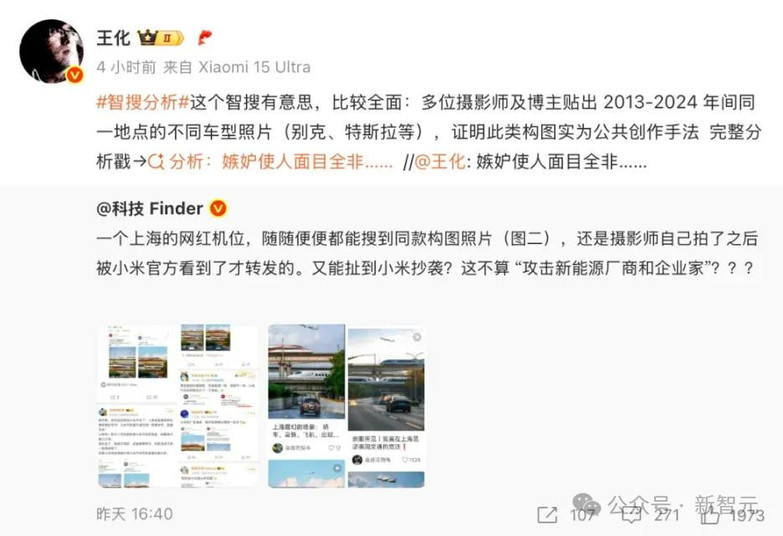比如小米汽车此前曾因宣传图片而引发质疑,小米集团公关负责人王化就通过智搜的分析,指出该图拍摄于上海常见的网红机位,并不存在抄袭行为。