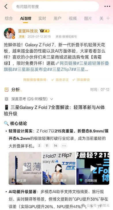对于数码和高科技领域这类信息,微博智搜的准确性和全局性也天然地与它们十分契合。