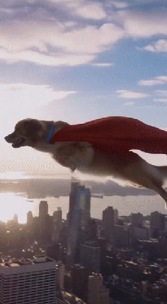 Prompt: @rocket is a superpowered superhero dog, flying through the sky and saving new york city