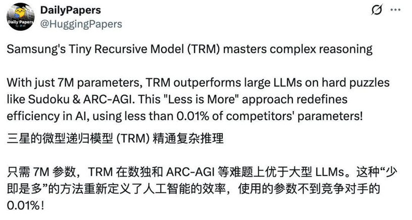 700万参数击败DeepSeek R1等,三星一人独作爆火,递归颠覆模型推理