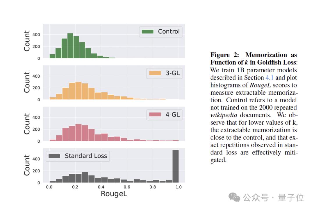 相比之下,金鱼损失则用哈希掩码确保每次遇到同一段落,掩盖位置都一样,这就从根本上阻止了模型复现完整训练文本。