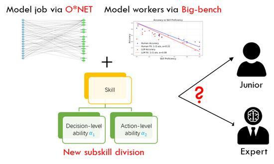 基于此,这篇论文的作者在ICML 2025发表的新研究提出创新框架:将工作解构为技能单元(skill),再将每项技能拆解为两个核心构件——决策判断(decision-making)与执行实施(execution)。