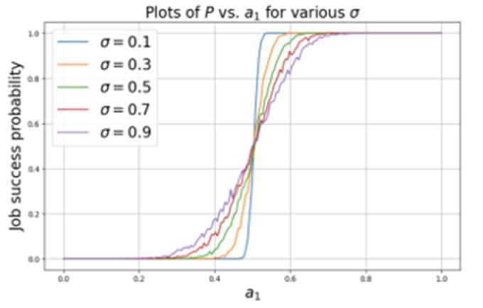 P:成功概率,a_1:决策层能力参数,σ:能力方差