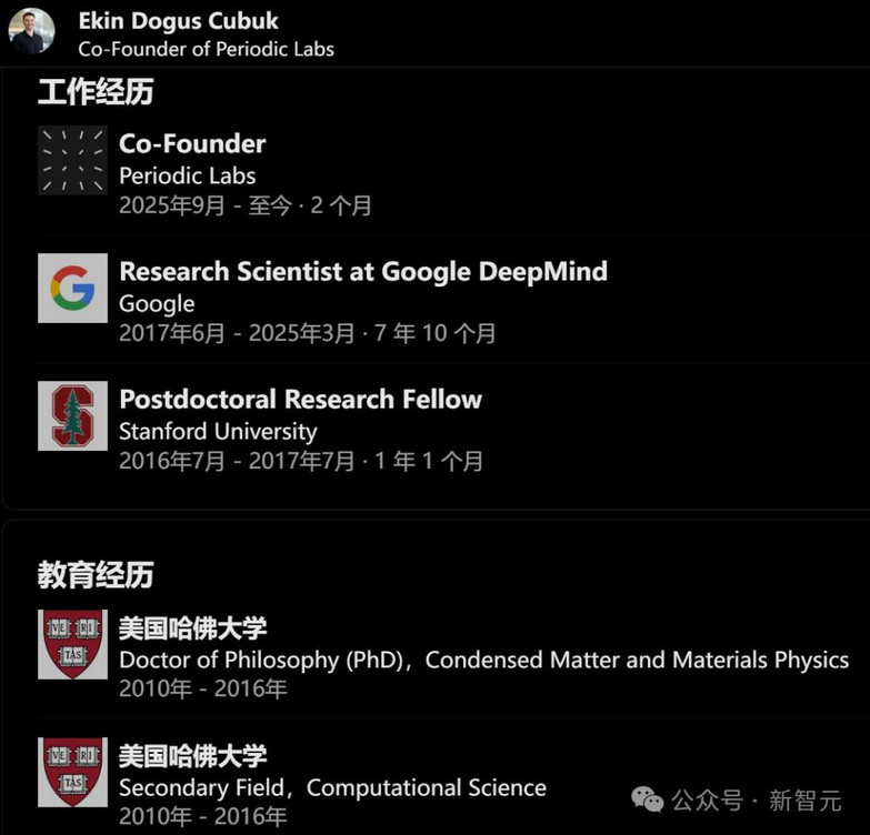 Ekin Dogus Cubuk则是一位物理出身的材料科学家,曾在DeepMind和Google Brain领导材料科学与化学研究。