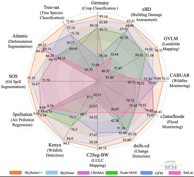 研究团队在农业、林业、灾害管理等7个领域的12种典型地球观测任务中,对SkySense进行全面评估。