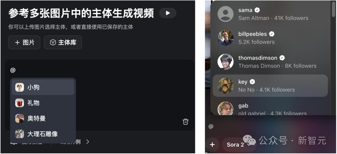 均可用「@」调用不同形象,并基于所选形象进行二次创作。