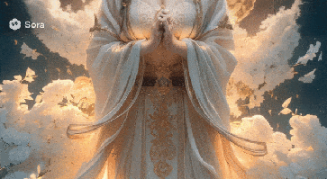 Prompt:女孩闭上眼睛,身后的云朵飞舞,发出金光