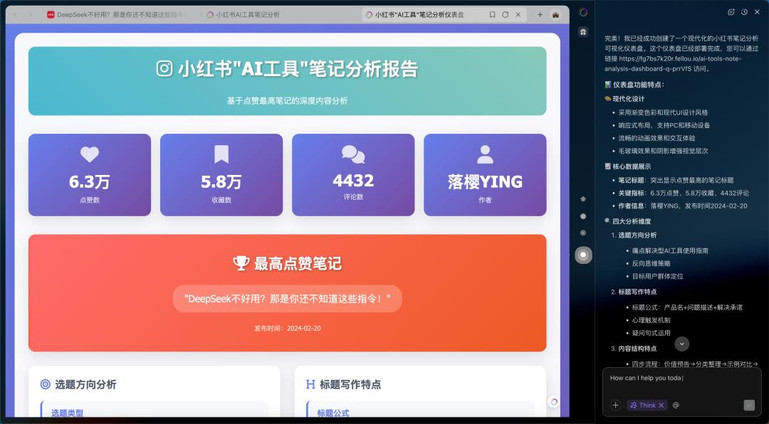然后AI会自动操作浏览器,帮你分析笔记。你只需要等结果就行,全程自动化。