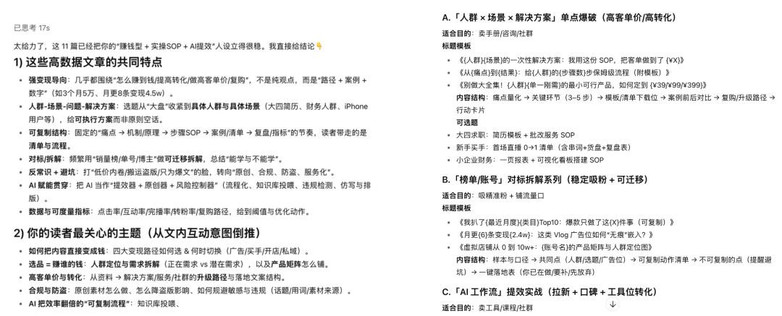 现在用AI,10 分钟就能分析完爆款笔记,找到选题规律、内容结构、话术特点。