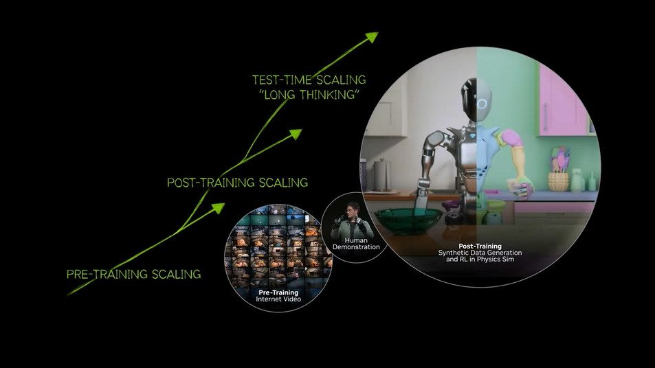 该模型的亮点在于大幅提升了训练效率,传统人工数据采集通常需要近三个月,而新模型通过 GR00T-Dreams 工具生成合成数据,新版本开发可以缩短到 36 个小时,显著缓解了制约人形机器人发展的数据瓶颈。