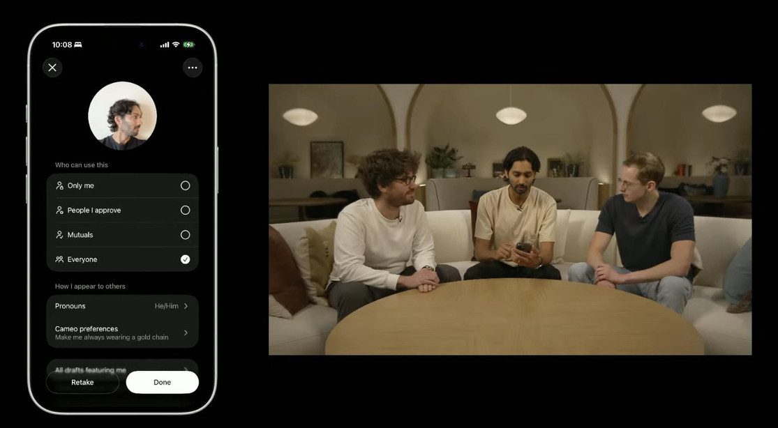 OpenAI在这款应用中处理了许多安全问题,例如肖像使用方面的知情同意、出处确认、防止有害内容的生成等等。