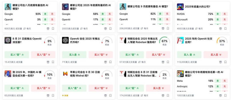 polymarket上关于AI相关的预测话题