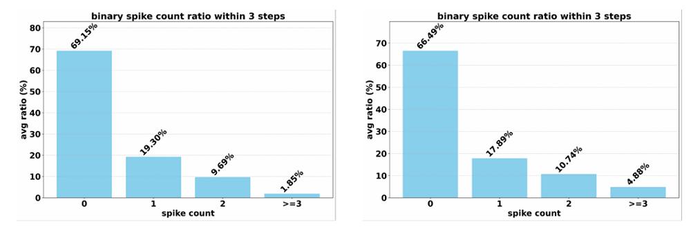 脉冲统计显示,7B版本模型实现了超过69.15%的稀疏度,长序脉冲占比约1.85%,这为低功耗的类脑大模型运行提供有力支撑。