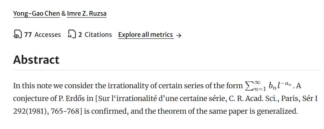 在OEIS的参考文献里,陶找到了Yong-Gao Chen和Imre Z. Ruzsa这两位作者的一篇论文,这篇论文事实上已经给出了该问题的完整解决方案,只是Erdosproblems网站(收录了近1000道Erdős问题)并不知道。
