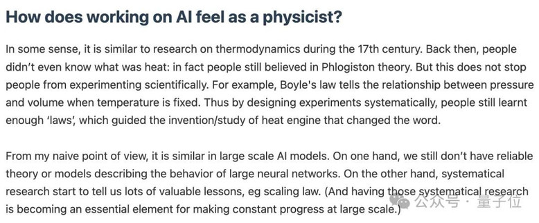 姚顺宇表示,作为一个物理出身的AI研究者,AI研究目前“不懂原理但能持续找到规律”的感觉,他非常熟悉,也很享受。