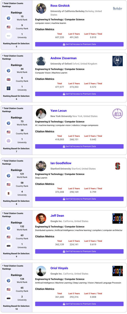 全球高被引TOP 10,计算机大牛占4席
