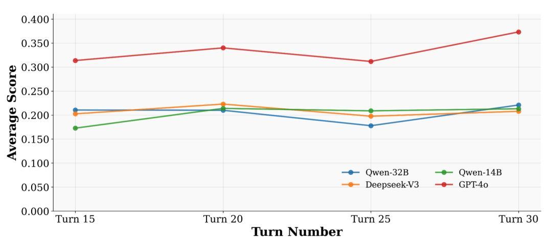 - 更多对话轮数≠更好表现:盲目拉长交互轮数并不能带来收益;同时,命中答案的 “时效性”(更早给出有效答案)与整体模型对话质量也并不总是正相关:小模型 “早早猜中” 整体也不如大模型的 “稳扎稳打”。