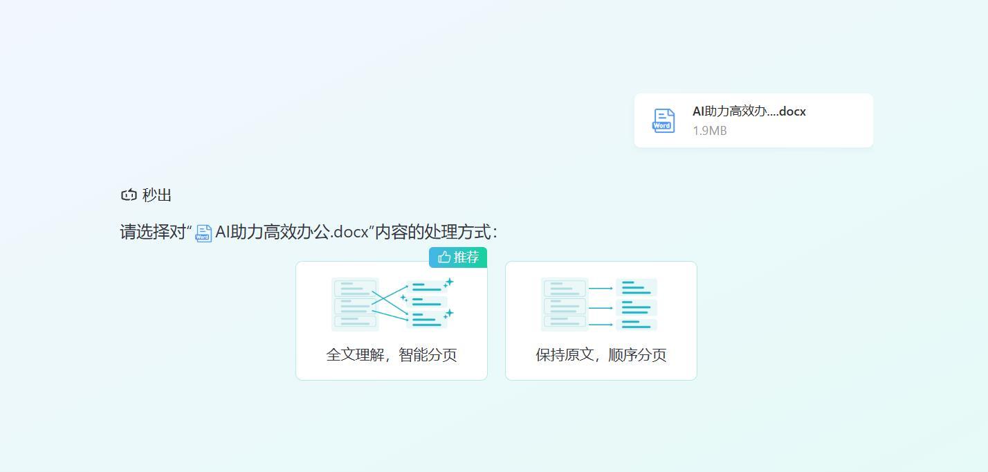 秒出PPT支持多格式文本导入,提供两种处理模式:
