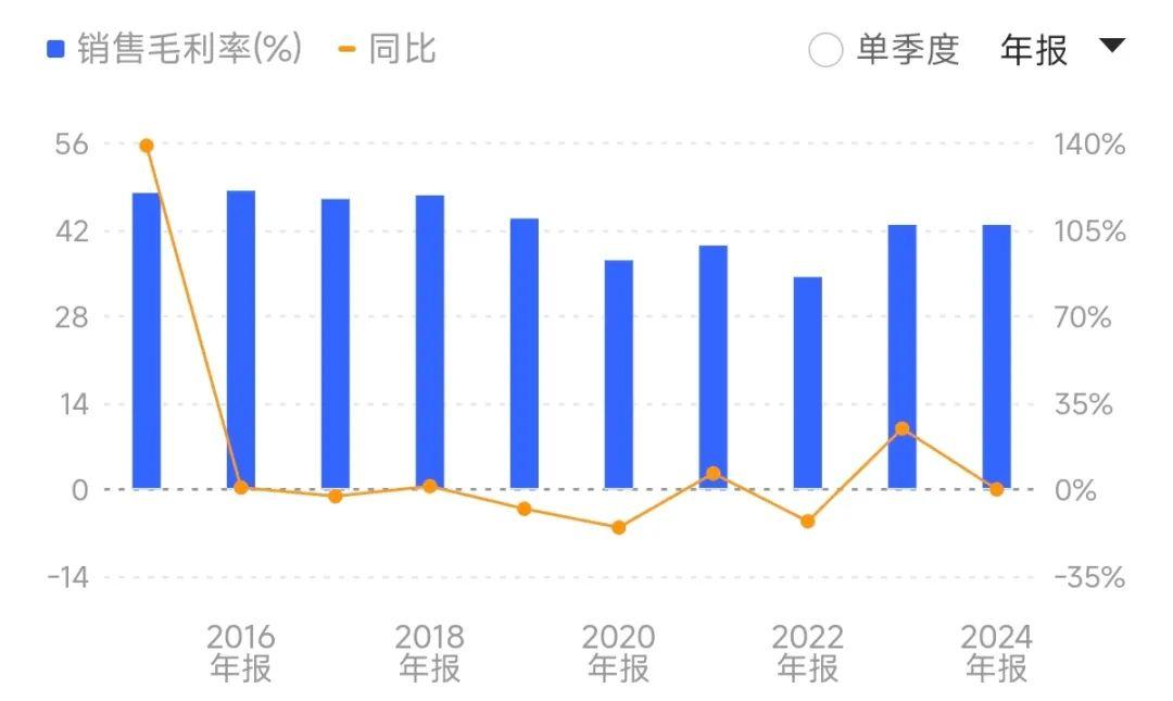 2015年—2024年美年大健康的毛利率和净利润走势(图表源自同花顺)
