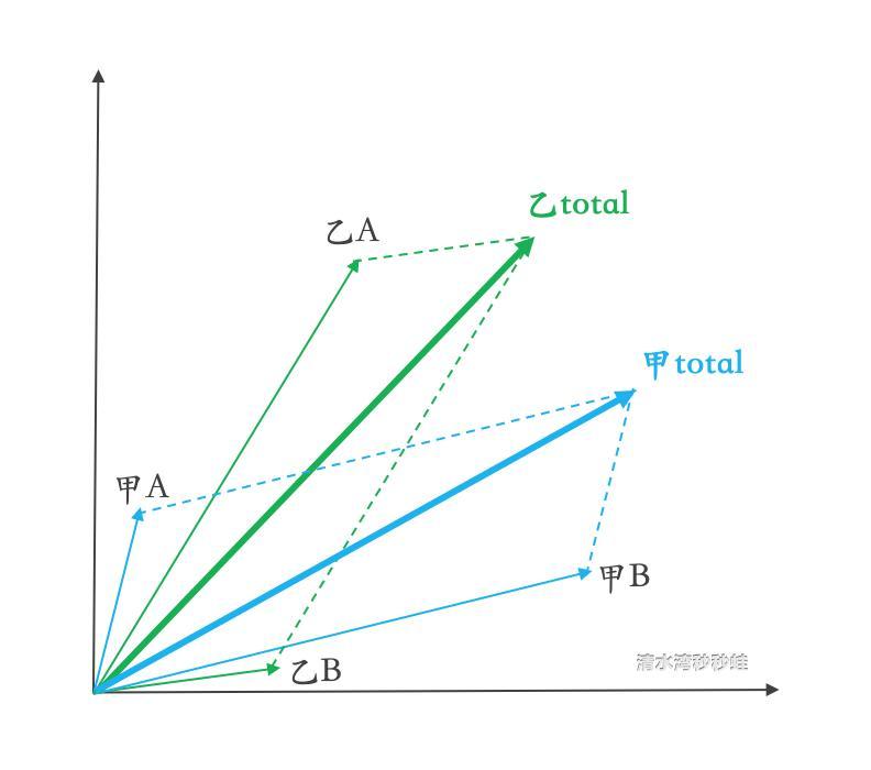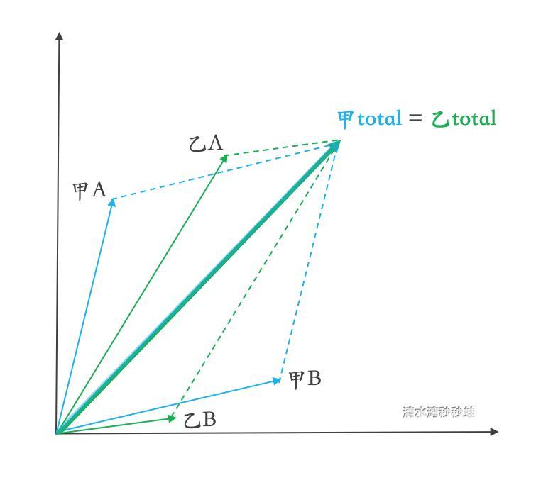 下图中存在甲乙两个整体,每个整体都由A和B两个向量组成,假设甲A+甲B = 乙A+乙B。