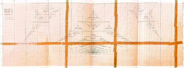 每天晚上,他设定好一个α值,然后让计算器彻夜工作;第二天清晨,他会看到一卷长长的纸带从机器中伸出,上面打印着该α值下所有允许的能量值的位置。