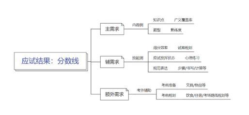接下来我们一起来尝试着将市面上绝大多数的考试达线看作一个任务进行拆解时其所涉及的内容通常可以分为三个维度,在我们产品的视角下也可以看成是三类需求:(见下图)