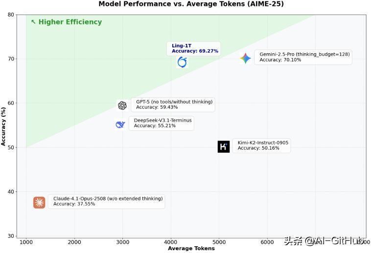 在竞赛数学榜单AIME 25上,Ling-1T超越一众模型获得最优表现,彰显了其在复杂数学推理方面的强大能力。