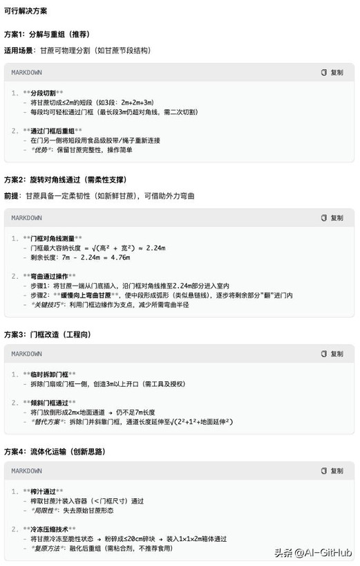回答经典推理题:7米长甘蔗通过2米高1米宽的门