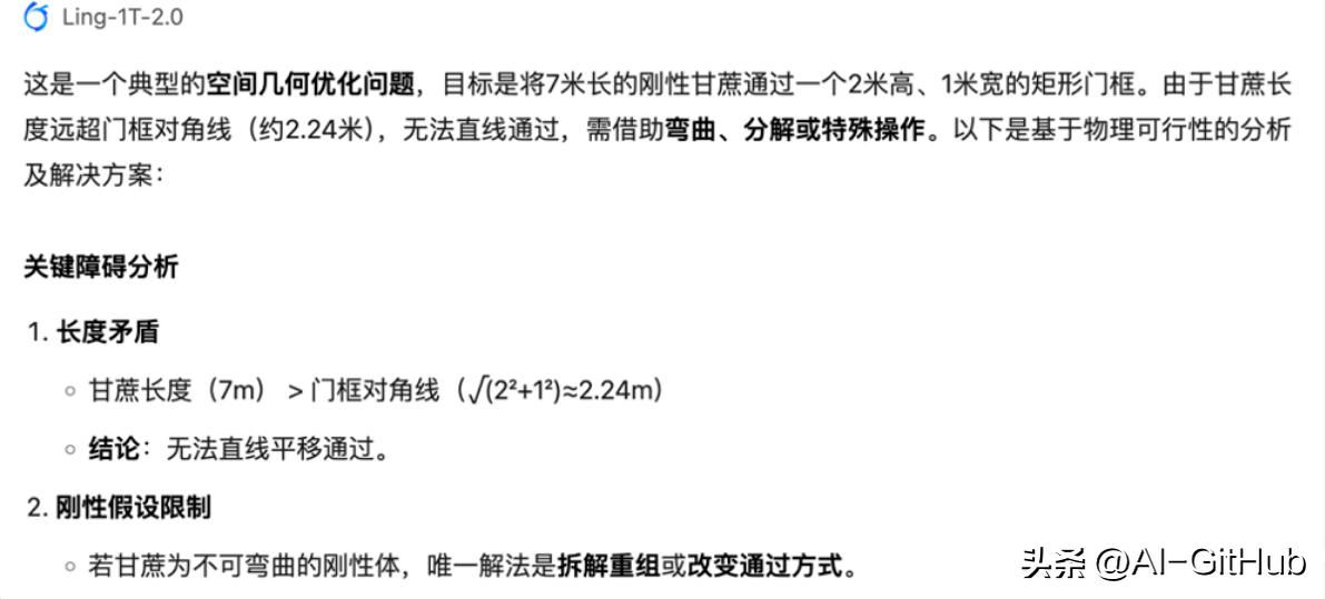 Ling-1T展现出了令人惊艳的响应速度。无论是复杂的空间几何问题还是多步骤的数学推理,模型都能快速启动思考进程并给出详细解答。