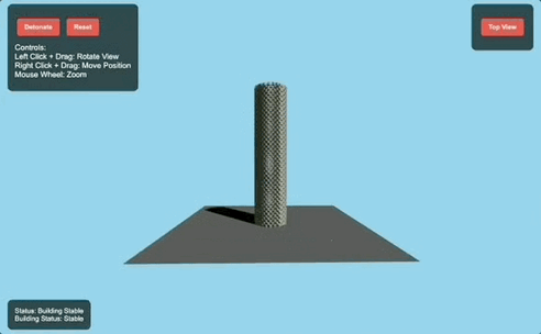 建筑物爆破过程的动画,一座60层高的圆形塔楼在重力和冲击波的作用下倒塌,整个过程都遵循真实的物理规律。