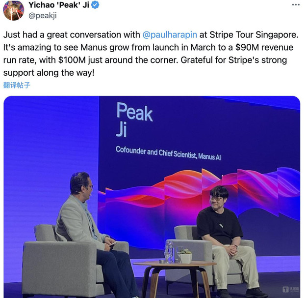 AsianFin -- At an event in Singapore on August 20, Manus co-founder and Chief Scientist Ji Yichao revealed that since its launch in March, the company’s revenue run rate (RRR) has reached $90 million and is “about to hit $100 million.”