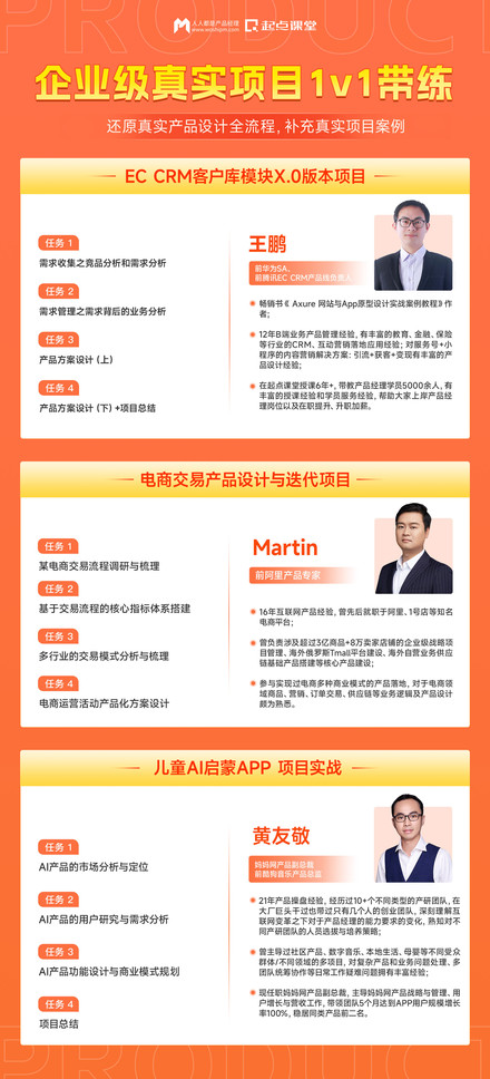 于是咨询了起点课堂的顾问老师,他推荐了适合0转岗人学的《产品经理私教陪跑实战营》给我。