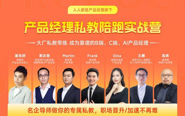 推荐你来参加“人人都是产品经理&起点课堂”1年时间深度打磨的《产品经理私教陪跑实战营》——融合(腾讯、阿里)大厂产品经理成长体系,普遍适用于B端、C端、AI多业务场景,200h硬核干货帮你系统提升AI时代的产品核心能力!