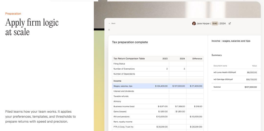 这种设计思路非常聪明。大多数AI工具要么是通用性很强但缺乏税务专业知识的工具,要么是功能狭窄的点解决方案。而Filed则采用了一种混合方法:既有专门的税务知识基础,又有足够的灵活性来适应不同事务所的具体需求。通过定制化,Filed的AI工具可以镜像现有的工作流程和惯例,以及事务所特有的实践方法。