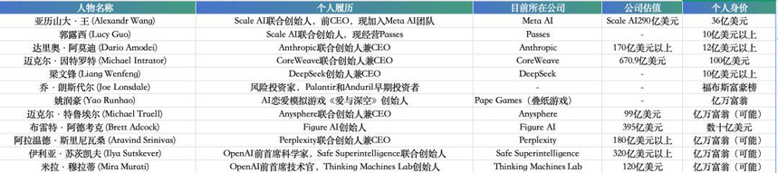 比如,Scale AI联创郭露西,在Meta投资Scale,创始人亚历山大·王加入了Meta的AI团队事情之后,离开了Scale,但是她紧握住Scale5%的股份,随着Scale估值水涨船高,获得10亿+美元身家。