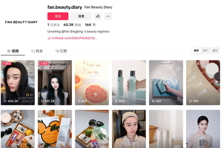《当代企业》发现,目前Fan Beauty在TikTok上有超过6万粉丝,范冰冰个人出镜视频有30万至40多万的播放,但普通的产品视频则仅有数百播放。目前来看,海外消费者的关注度仍在明星本人身上,对品牌的关注度相对较低,品牌在海外并没有激起太多水花。