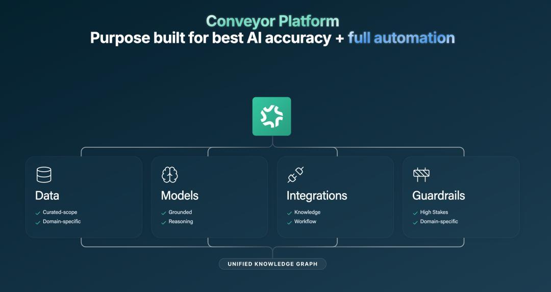 我特别认同SignalFire对这一趋势的判断:随着这种向agent的转变站稳脚跟,他们相信将有10-15家类别领先的公司崛起,主导按组织功能划分的个别高价值业务工作流程。在采购、金融和客户体验等领域,我们可以期待有意义的创新。简单来说,Conveyor就是今天为客户信任工作流程而构建的世代性公司。他们的AI agent充当值得信赖的队友,处理繁重的工作,释放人类专注于最重要的事情。