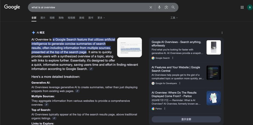 △谷歌上线的AI Overview功能。图源:谷歌官网