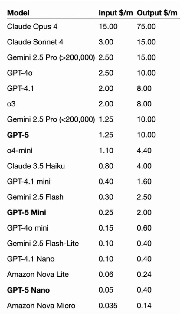 原因很简单:GPT-5的性能几乎全线最佳,价格却低到离谱。