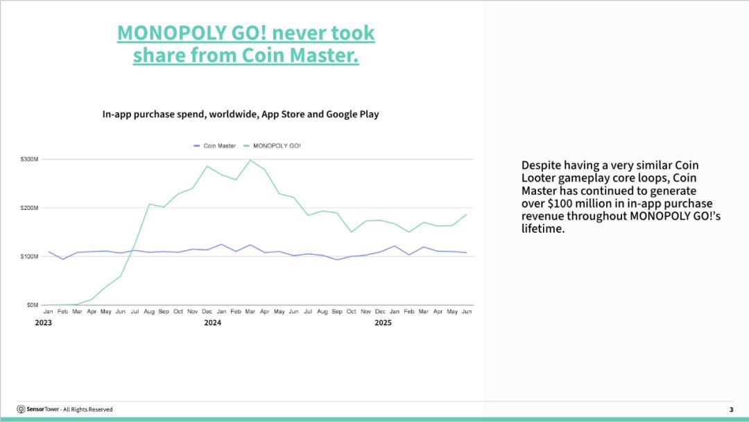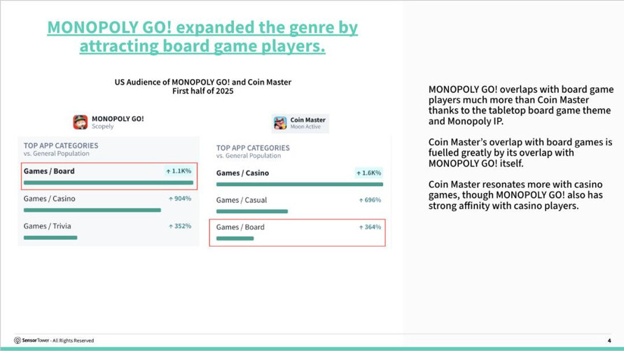 《Monopoly Go!》不是《Coin Master》杀手,而是品类扩展者。