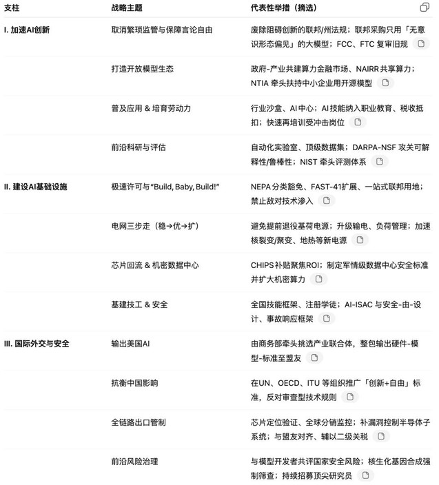 · 输出美国AI技术:向全球盟友提供安全的全栈AI出口方案(涵盖硬件、模型、软件、应用及标准体系)