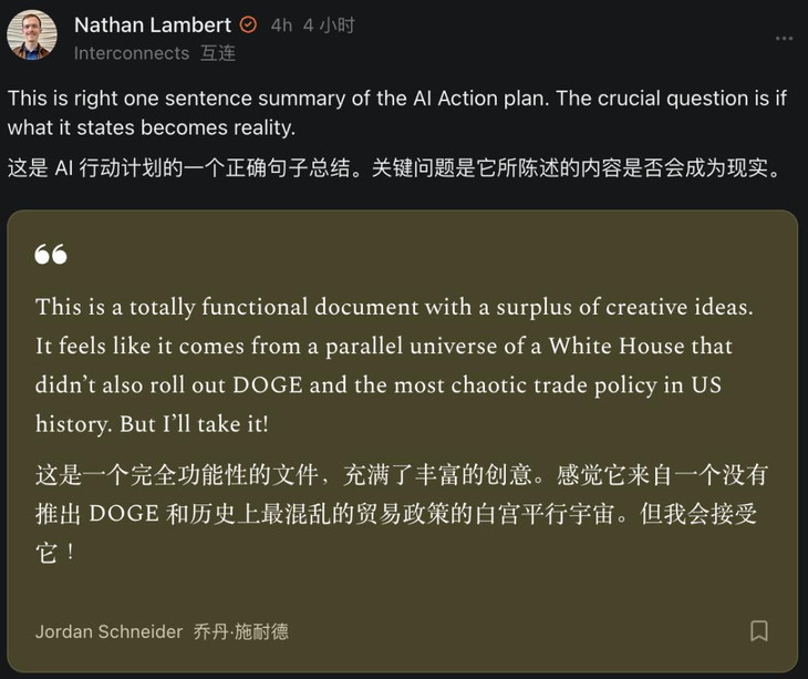 Nathan Lambert认为这次的行动计划,好得像是来自平行宇宙:富有创意,功能性十足。