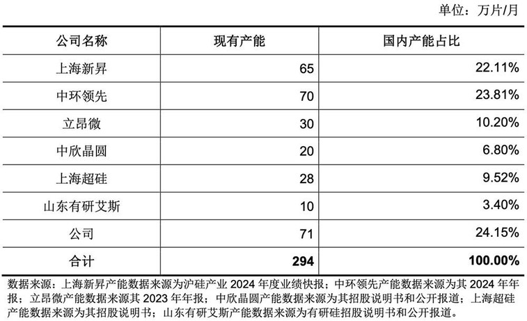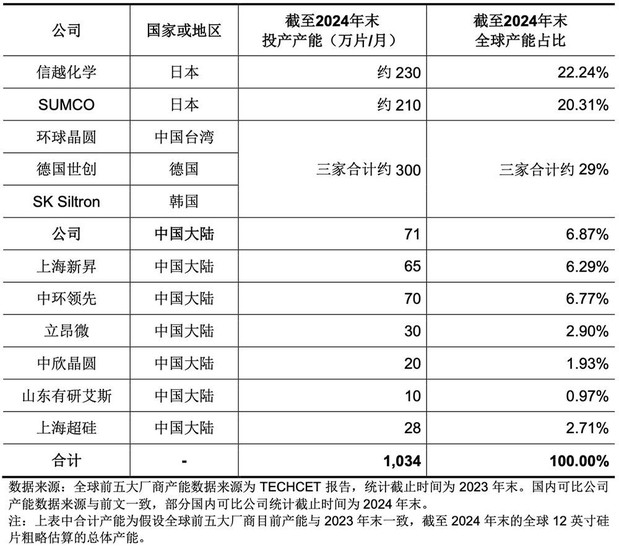 基于2024年月均出货量和截至2024年末产能规模统计,西安奕材均为中国大陆第一、全球第六的12英寸硅片厂商,月均出货量和产能规模全球同期占比分别约为6%和7%。