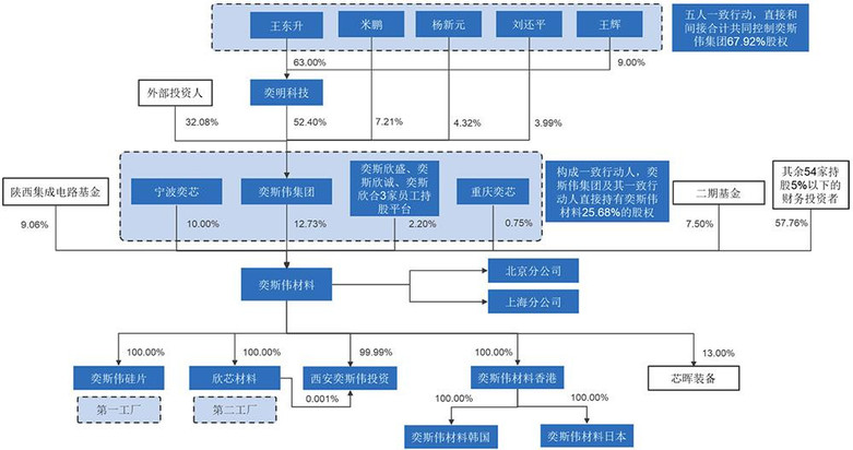 西安奕材成立于2016年3月16日,注册资本为35亿元,法定代表人是董事长杨新元,控股股东是北京奕斯伟科技集团有限公司,实际控制人是王东升、米鹏、杨新元、刘还平。