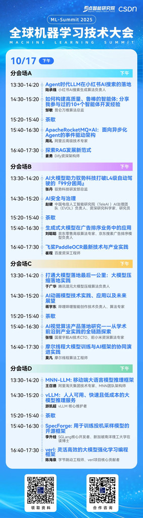 就在本周四,即 10 月 16-17 日,由 CSDN 与奇点智能研究院联合举办的 2025 全球机器学习技术大会将在北京·威斯汀酒店正式召开。