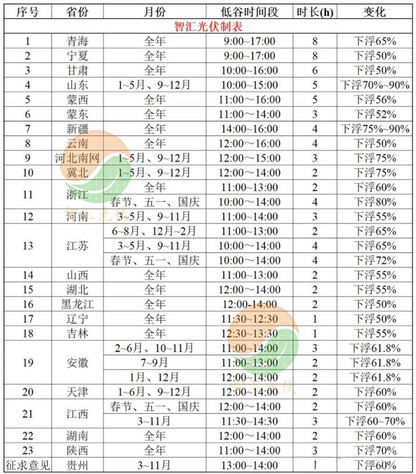 全国施行午间谷电的省份统计(来源:智汇光伏)