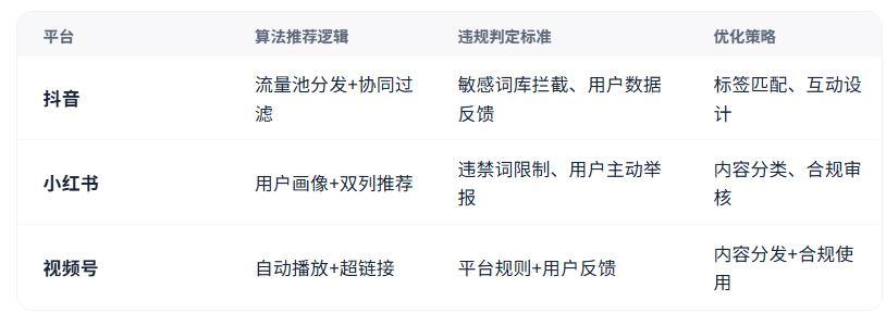 视频号的推荐算法与抖音、快手等平台有本质区别,其核心逻辑是”私域流量撬动公域流量”,内容权重在三大平台中最低,约占50%,社交关系链权重较高。